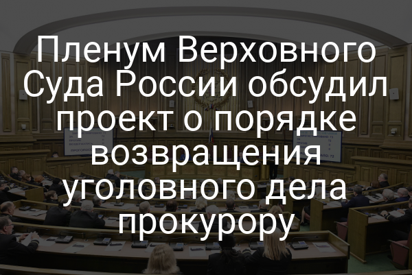 Пленум Верховного Суда Российской Федерации 19 ноября рассмотрел проект постановления «О практике применения судами норм Уголовно-процессуального кодекса Российской Федерации, регламентирующих основания и порядок возвращения уголовного дела прокурору».